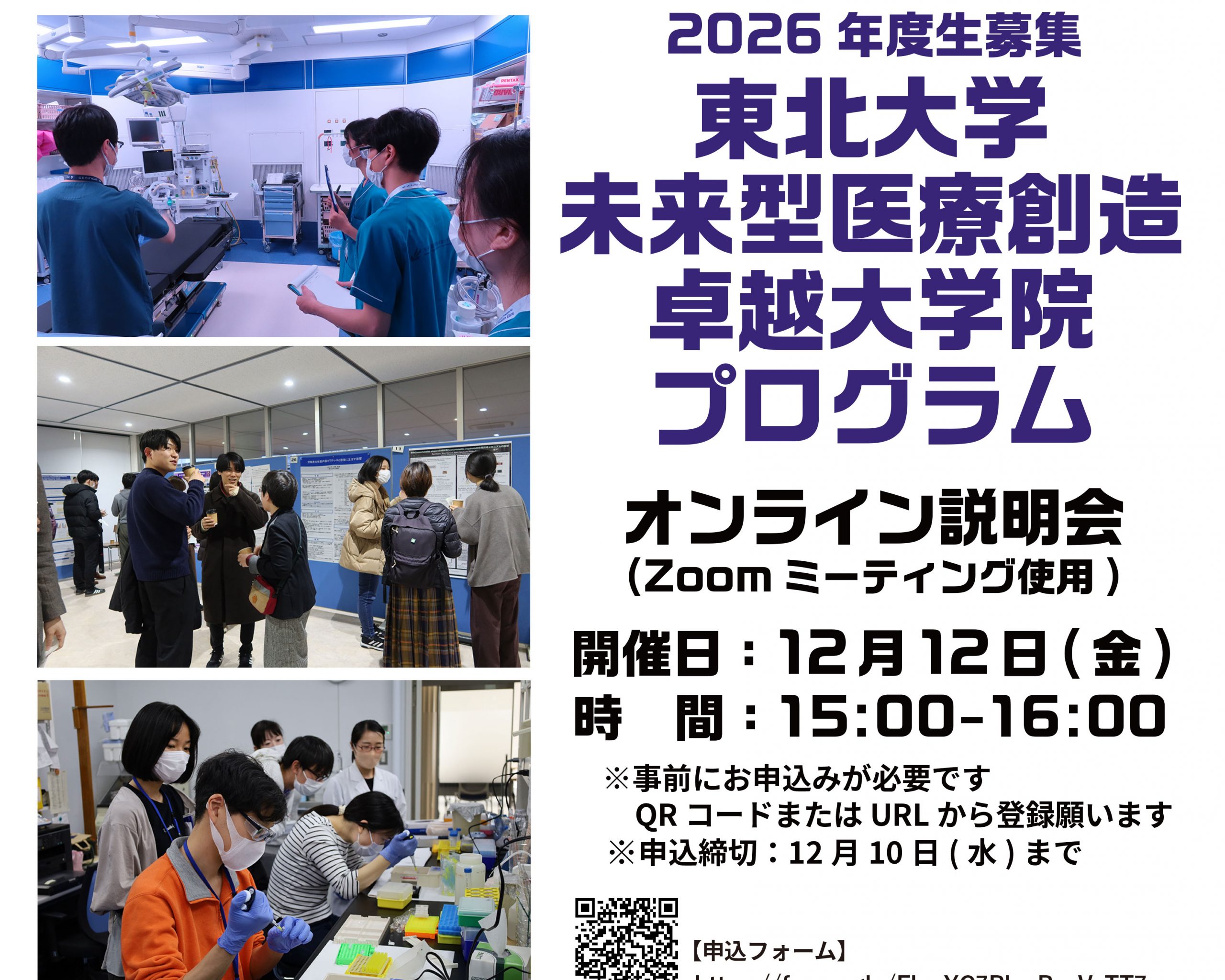12月12日(金)【オンライン説明会開催】2026年度生募集 未来型医療創造卓越大学院プログラム
