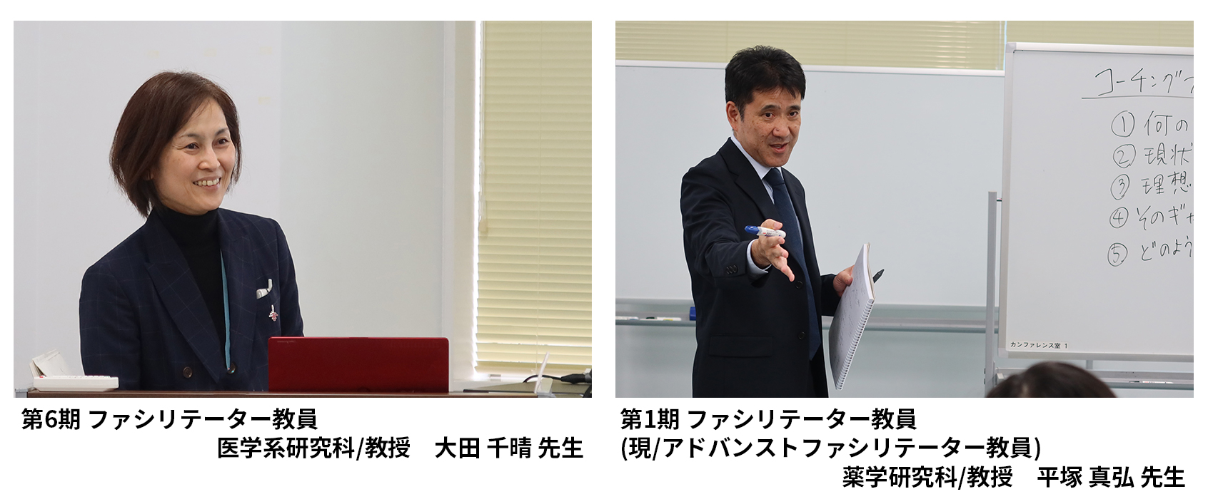 本プログラムでは、3年以上にわたりファシリテーター教員として活動し、その実績が認められた教員に対して「アドバンストファシリテーター教員」の称号を付与しています。称号付与にあたっては、プログラム履修生およびファシリテーター教員からの推薦を受け、書類審査および面接を経て厳正に評価されます。