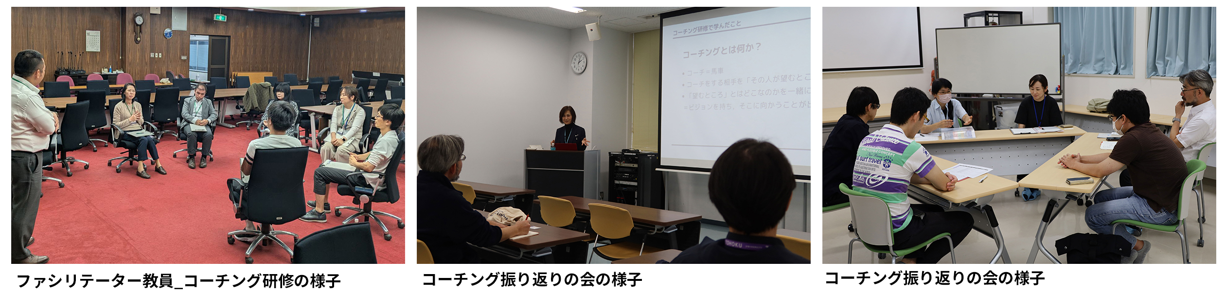 ファシリテーター教員を担当する方は、外部から招いた専門講師によるコーチング研修を受講します。研修では、履修生の考えを引き出し、自発的な行動につなげるためのコーチングの考え方やスキルを学びます。約1年間にわたる研修は、ファシリテーター教員自身の人生のビジョンを見つめ直す機会にもなります。多様な相手の可能性を広げる関わり方を身につけることで、文理を問わずあらゆる履修生への柔軟な対応が可能になります。
